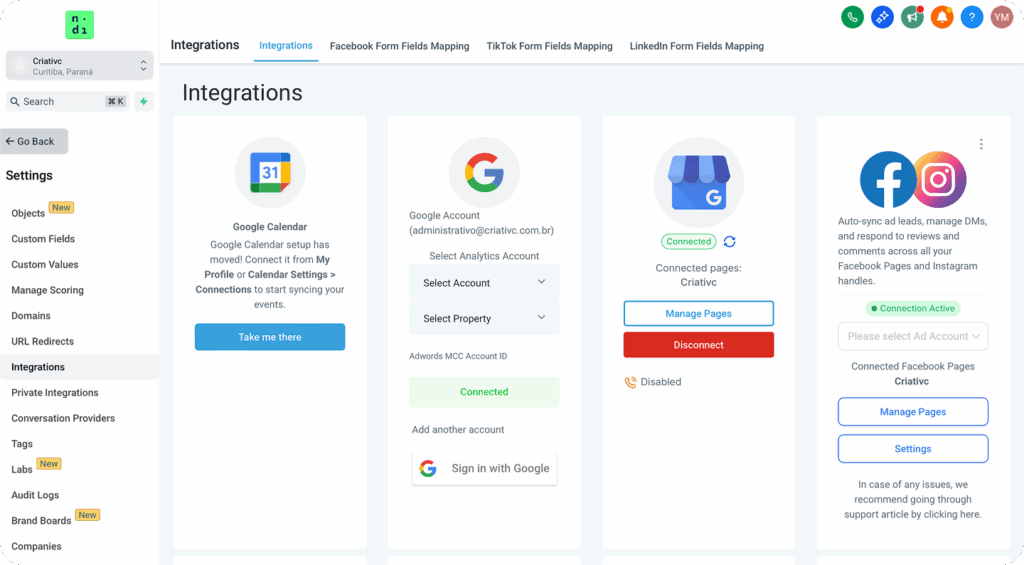 🔗 Integrações nativas disponíveis: