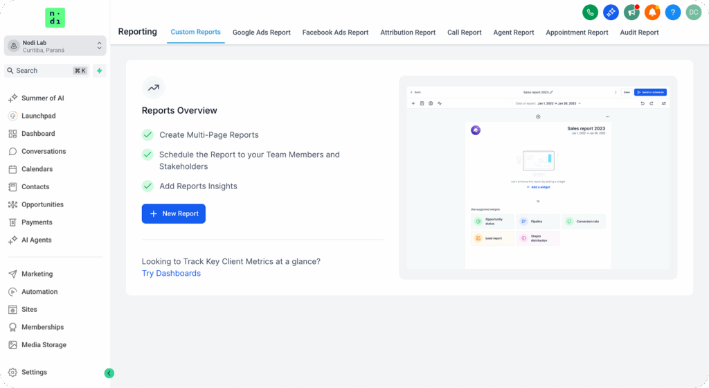 A Nodi Lab é a única ferramenta feita sob medida para empresas. Tudo o que você precisa para vender mais e perder menos tempo — com organização, inteligência e automações que trabalham com você e por você.